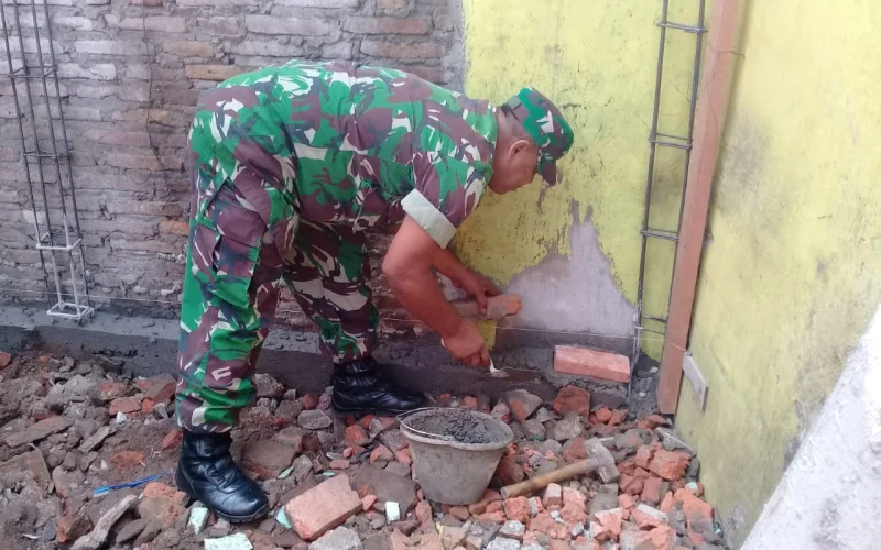 Babinsa Koramil 05/ Pasar kliwon Kodim 0735/ Surakarta, Sertu Tukidi membantu pelaksanaan bedah rumah tidak layak huni (RTLH) di Langensari RT 03 / I Baluwarti Pasar Kliwon, Jum’at (1/2/2019).